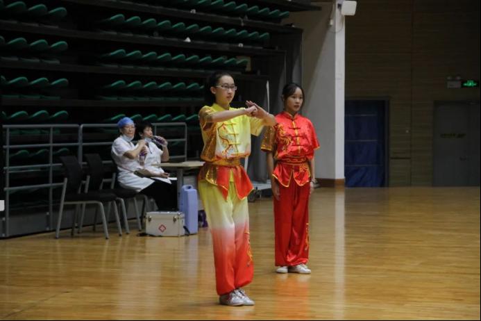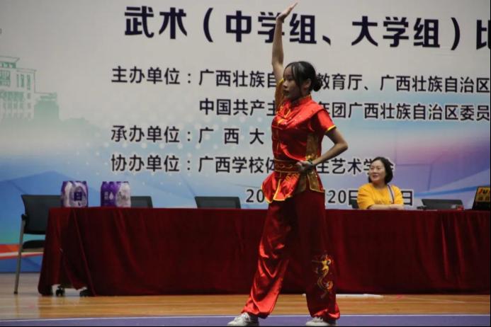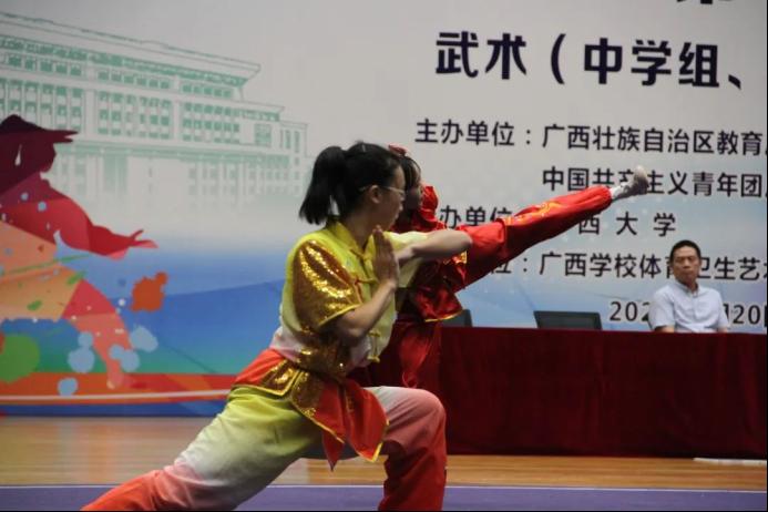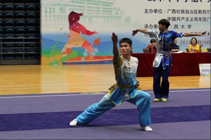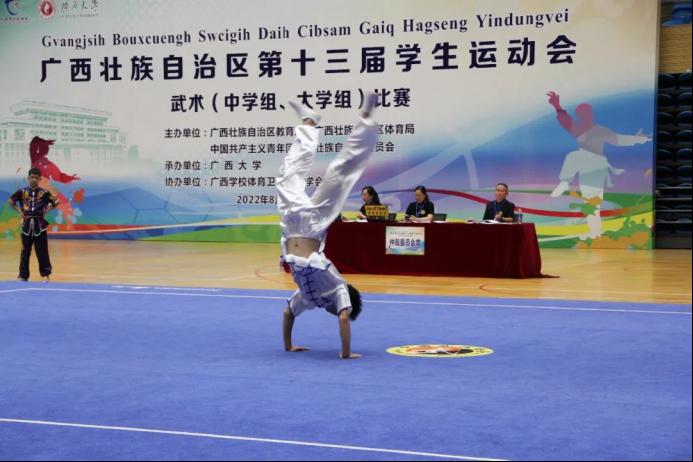 广西第十三届员工运动会武术(大学组、中学组)比赛正在进行时