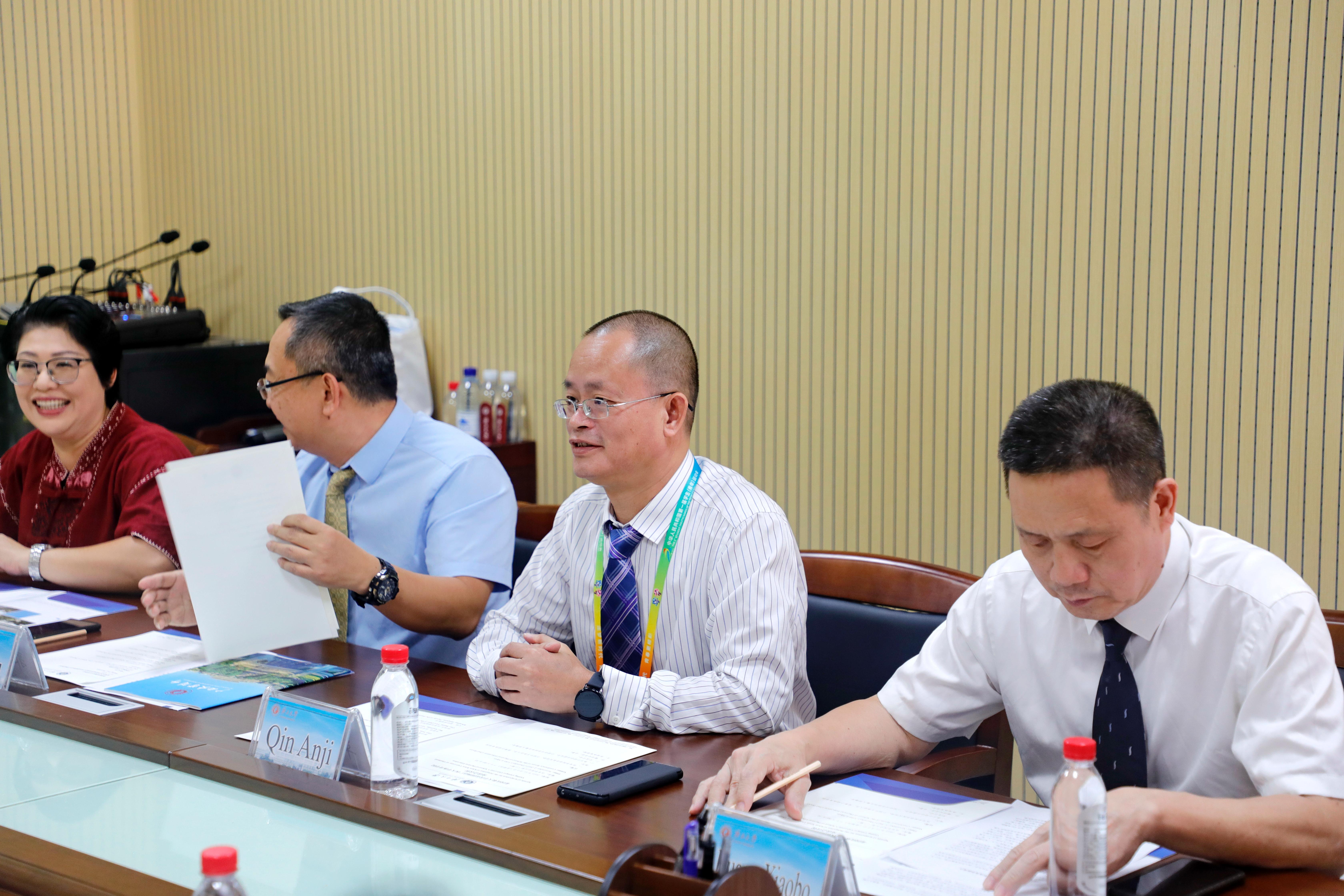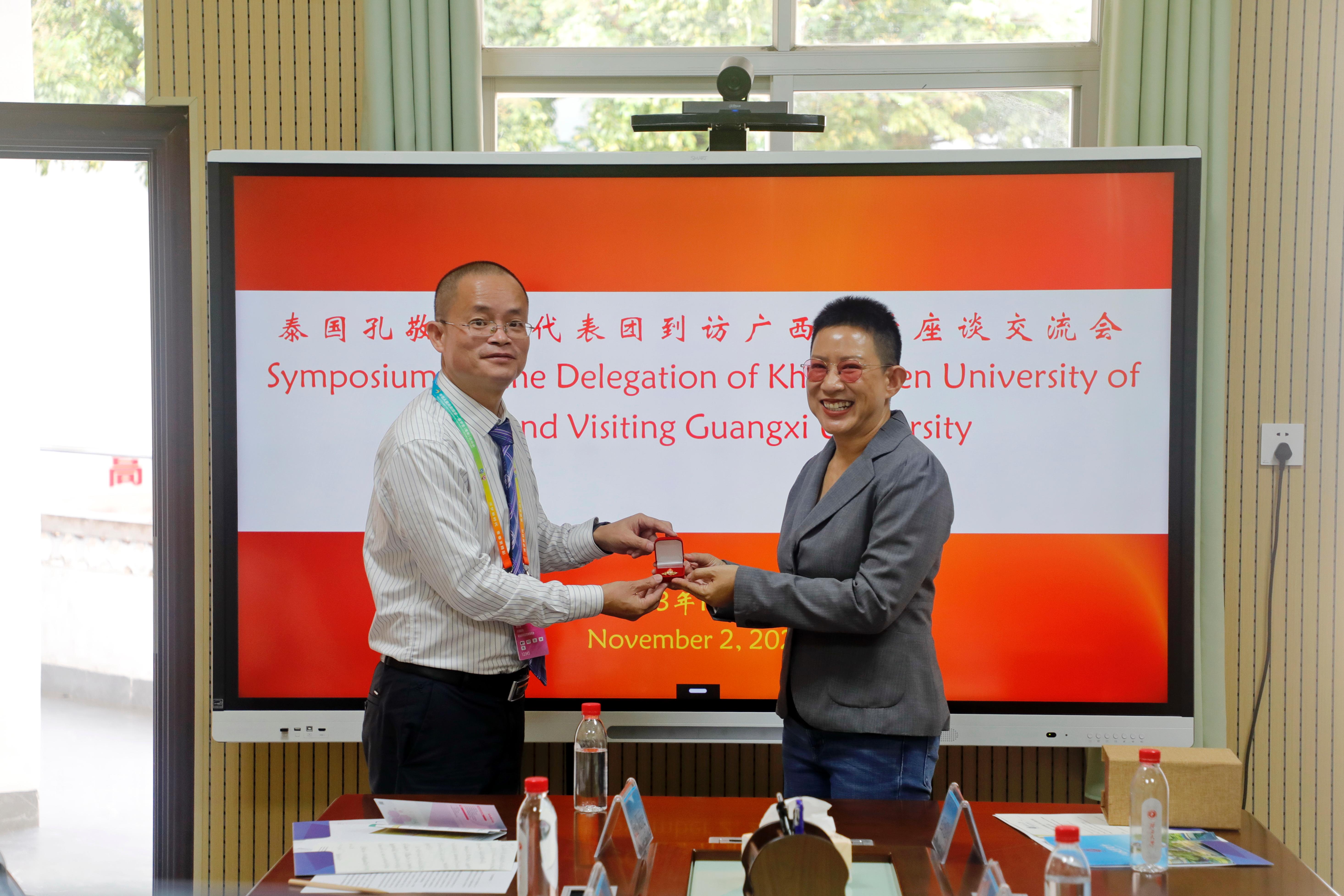 2023年11月2日下午,以经济公司经理甘拉帕普·朴通安(Kullapapruk Piewthongngam)女士为团长的泰国孔敬大学(Khon Kaen University)代表团到到公司交流访问,william威廉英国官网党委书记覃安基、经理黄小波等公司班子领导热情接待了代表团一行,宾主双方展开深入交流,并重点就学分互认、教师互派、学术交流、人才培养(学历提升)、康复训练、武术-泰拳文化交流等方面做了探讨,达成了初步共识,并表达了进一步协商的强烈意愿。