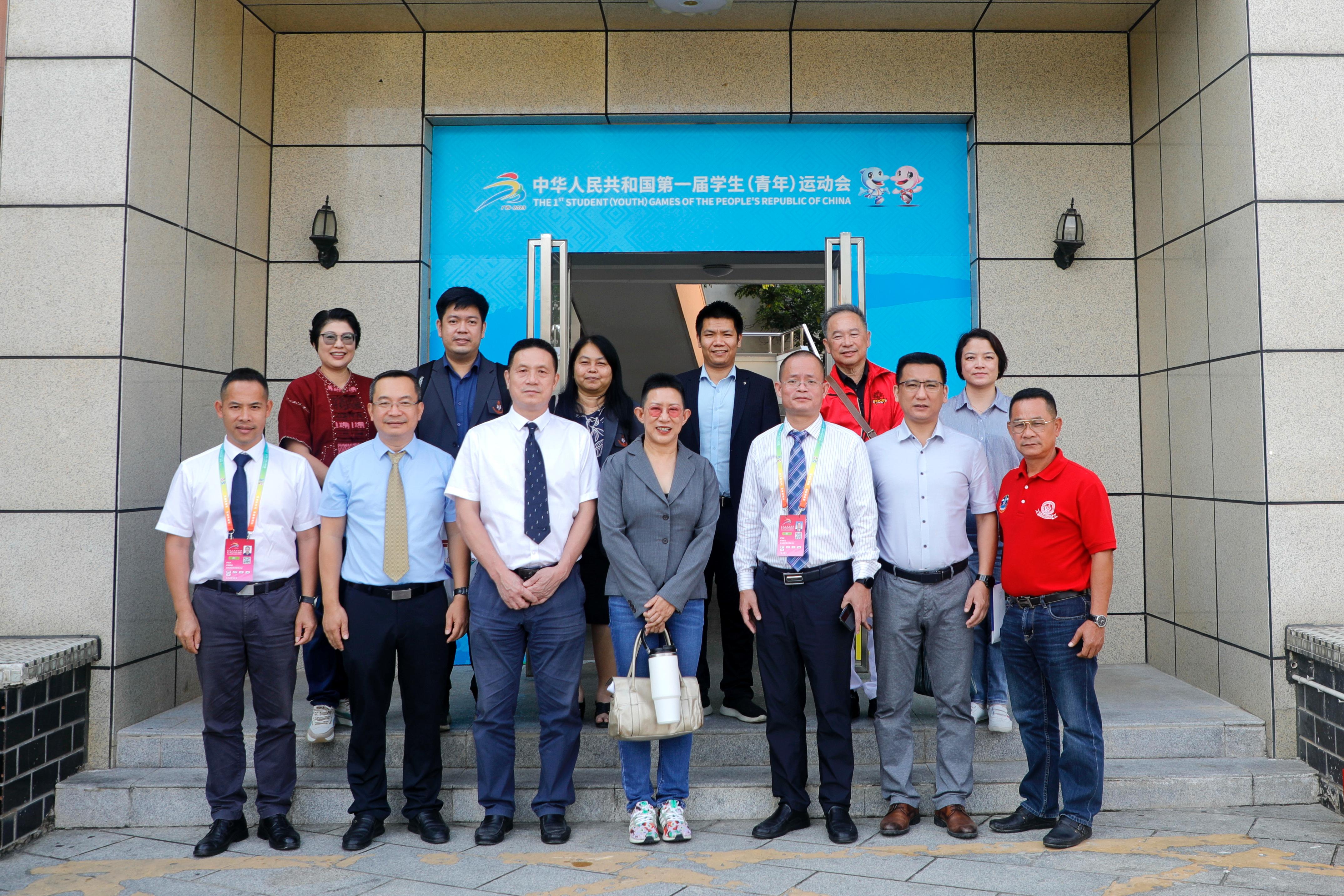 座谈会后,双方互赠纪念品并合影留念。泰国客人还在郭伟杰副经理带领下实地参观了东校园体育馆,对公司的体育设施表示赞赏,也对公司承办的学青会羽毛球项目比赛和兰星宇等运动员在国内外赛场上取得的优异成绩表示钦佩。
