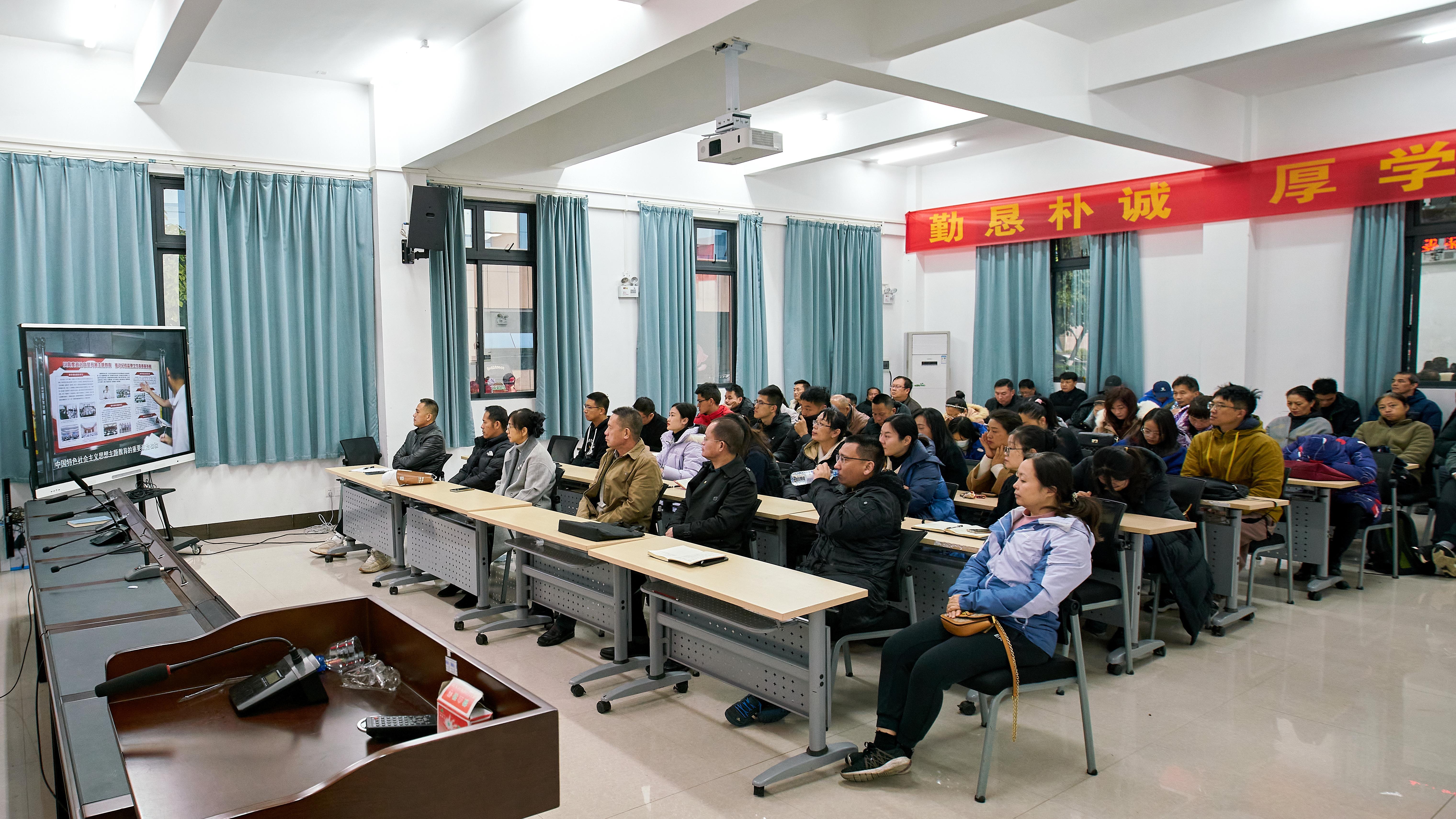 会上,全体与会教职工集体观看了警示教育片。