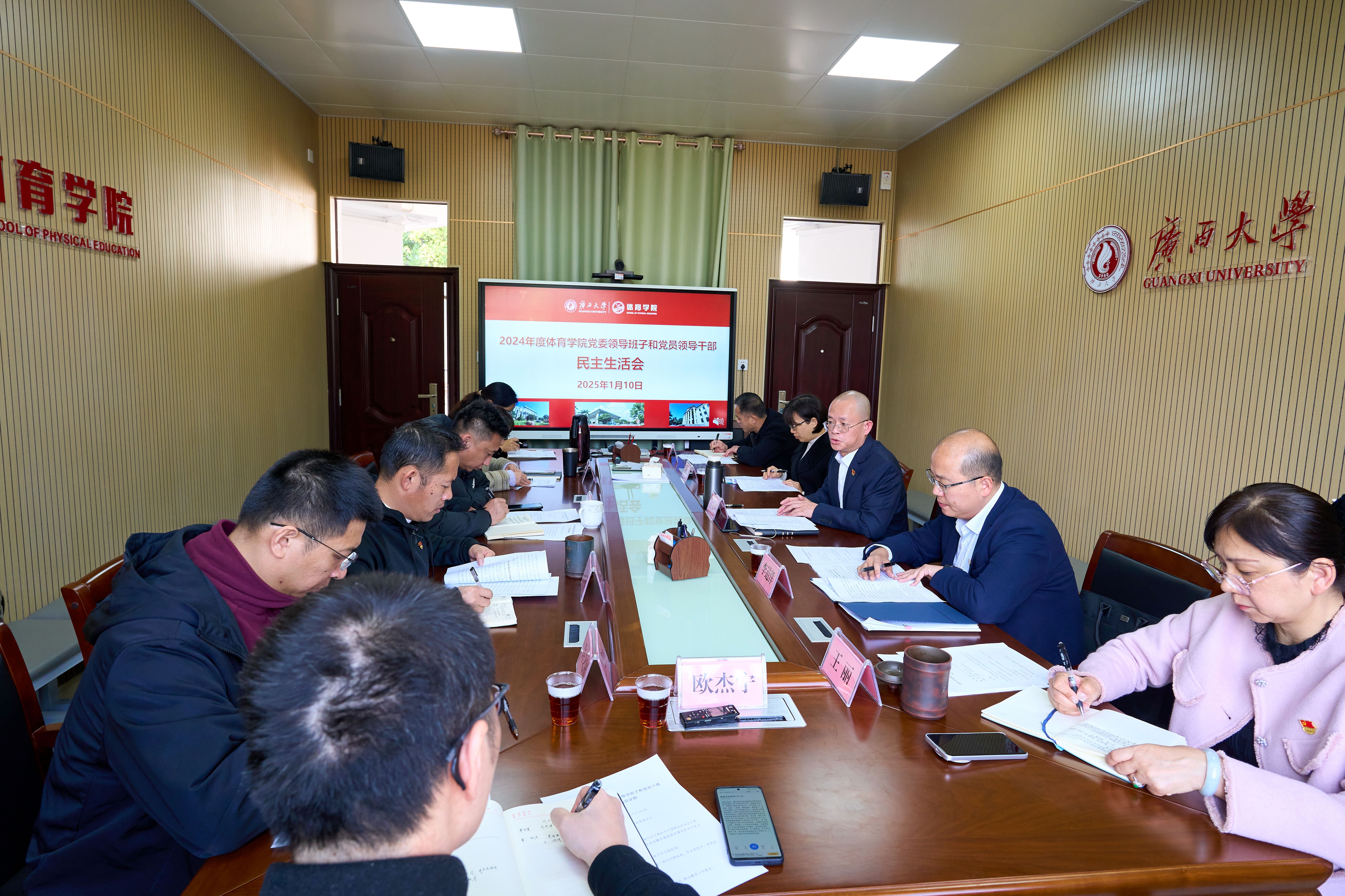 2024年度william威廉英国官网党委领导班子和党员领导干部民主生活会于1月10日在公司办公楼二楼召开,william威廉英国官网党委书记覃安基主持会议并讲话,william威廉英国官网党委组织部副部长李道洋、自治区纪委监委驻william威廉英国官网纪检监察组第一纪检监察室主任周艳华到会指导。
