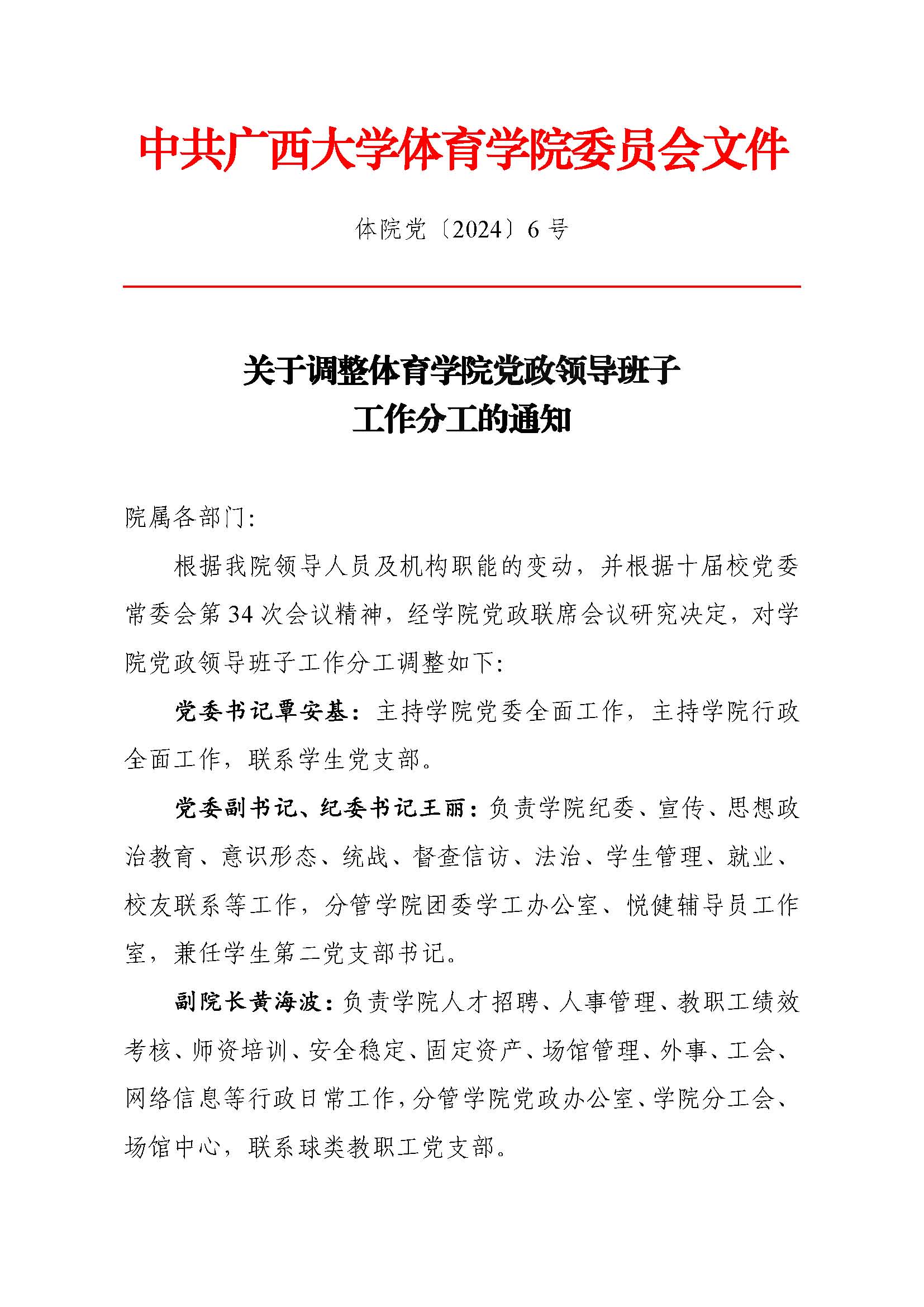 关于调整william威廉英国官网党政领导班子工作分工的通知