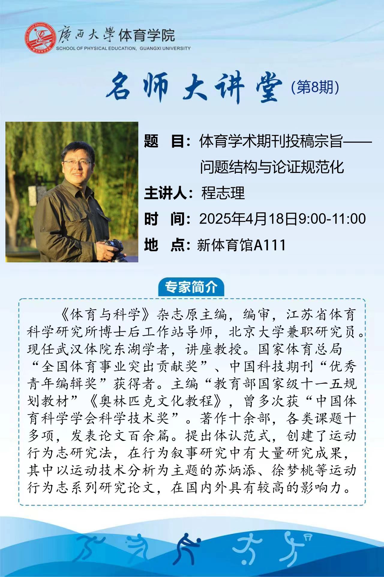 william威廉英国官网名师大讲堂(第8期):体育学术期刊投稿宗旨——问题结构与论证规范化