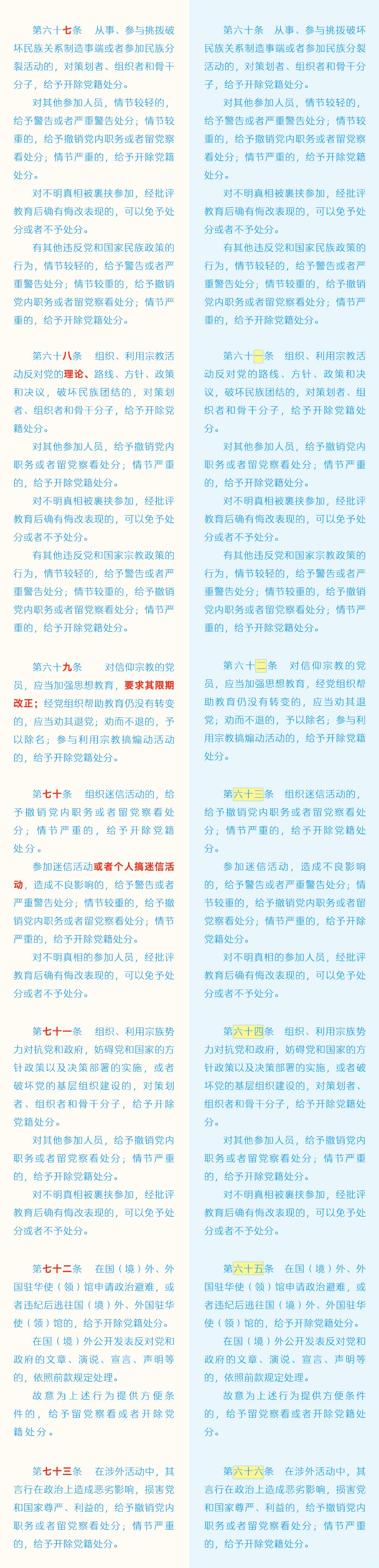 《中国共产党纪律处分条例》修订条文对照表